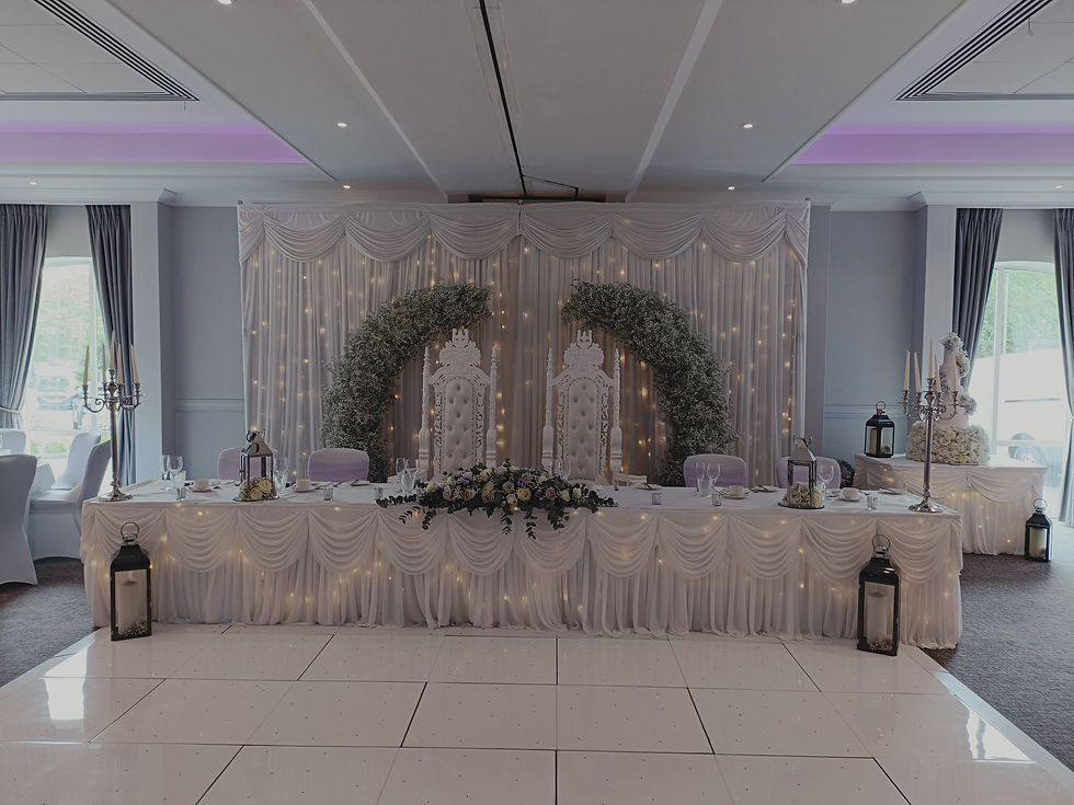 Glamourpuss has styled a variety of weddings at Thorpe Park Hotel & Spa, enhancing its contemporary charm with bespoke décor and floral designs. From chair covers and sashes to luxurious table centrepieces, ambient lighting, and romantic backdrops, every detail is carefully tailored to reflect each couple’s personal style and vision. With expert coordination and attention to detail, Glamourpuss helps transform Thorpe Park Hotel & Spa into a stunning setting worthy of such a special occasion.