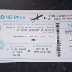 Our Passport and Ticket Invitations are perfect for weddings abroad, especially when paired with matching luggage tag name cards that pack easily for your journey. The Passport Invitation includes multiple pages, making it ideal if you’d like to share lots of details, while the Ticket style offers a simpler, bite-sized option. Both designs can be customised with your choice of printed colours and sparkling gems